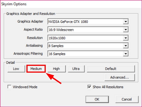 2. Now, navigate to the Detail section and there click on the button Medium. This will change all your settings to something more performance-friendly